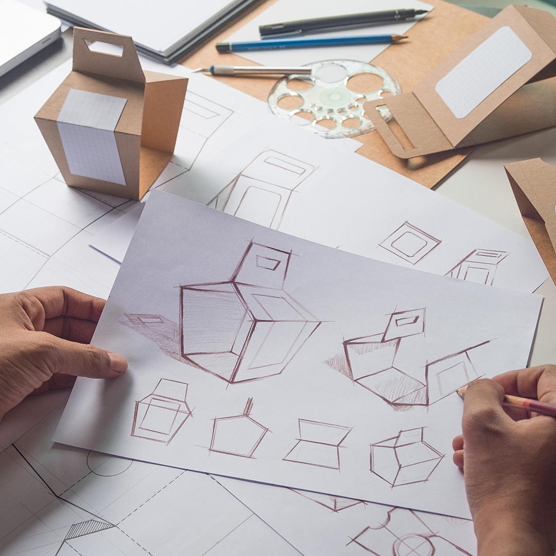 Koncepcja: Nasi graficy przygotowują wstępny projekt naniesiony na cyfrowy wykrojnik.